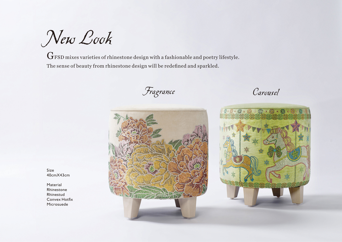 Unlike sticking the rhinestones on the finished furniture by handmade, we can hot transfer the rhinestone on different parts of furniture before they combine together. And the shapes of rhinestone design are not to be confined to furniture structure, and we can do the seamless design makes the patterns have endless effects.